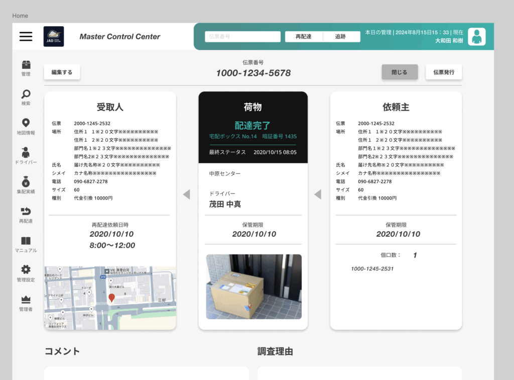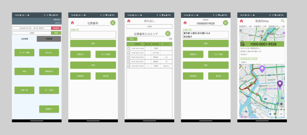 当時、システムを使って実際に配送は行われていましたので、そのアプリケーションを実際に操作して荷物を特定の住所へ配送する業務を自身で行い、業務フローの理解と操作性の問題点の調査を行いました。